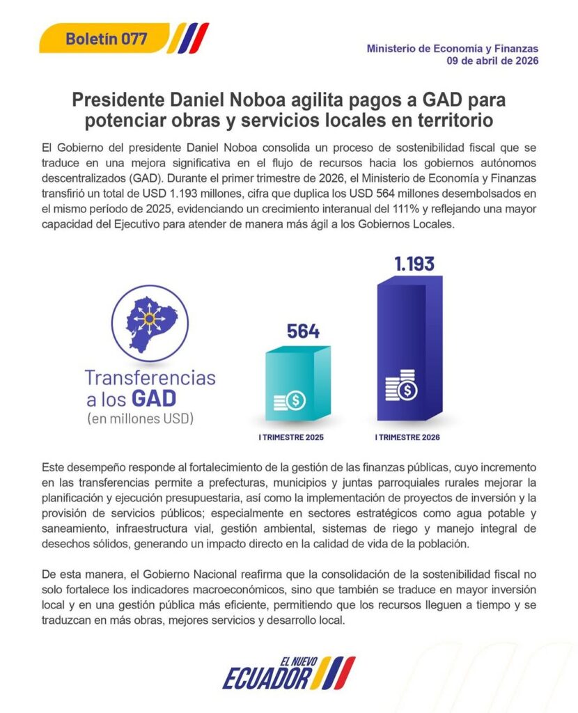 abril 13, 2026 gadhuertasgob Leave a Comment on PRESIDENTE DANIEL NOBOA AGILITA PAGOS A GAD PARA POTENCIAR OBRAS Y SERVICIOS LOCALES EN TERRITORIO Presidente Daniel Noboa agilita pagos a GAD para potenciar obras y servicios locales en territorio. Posted in: Business & Finance Digital Solution Social Marketing